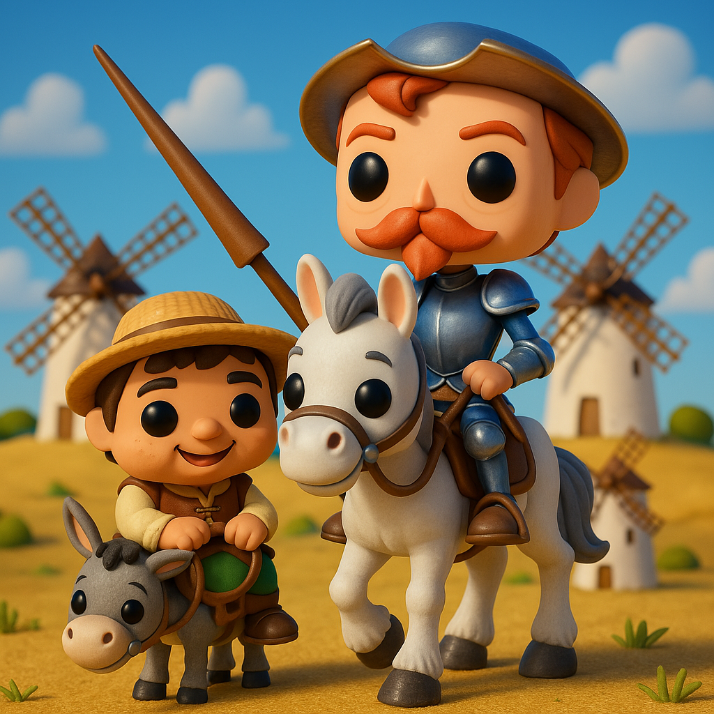 Cada figura de FunkiJote es una obra de arte única, pintada a mano con dedicación y pasión. Inspiradas en los personajes inmortales de Miguel de Cervantes, nuestras figuras de resina capturan la esencia del Quijote de La Mancha.